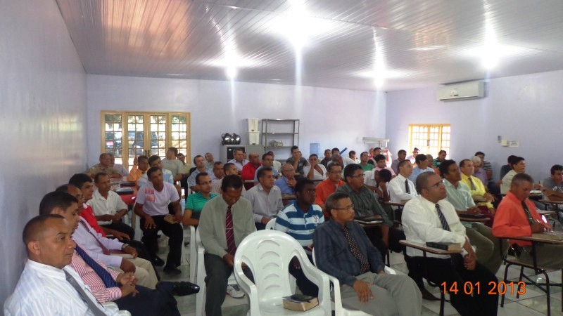 No auditório do Quartel da Polícia Militar, os homens se reuniram para receberem as instruções ministradas pelo pastor Agenor e sua esposa Eloína reuniu com as mulheres na congregação Monte Horebe.